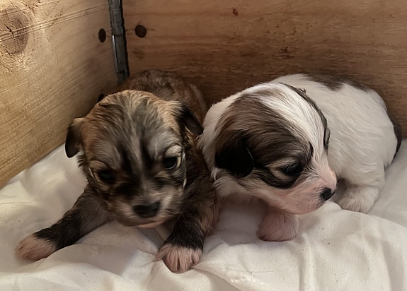 Vores dejlige hvalpe med Cleo og Fnug, kombinerer det bedste af begge verdener – de er udadvendte, robuste og har et varmt, kærligt sind.