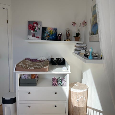 Puslepladen dækker kommodens fulde overflade, og giver god plads til både puslepuden og evt. et par kurve med tilbehør ved siden af.