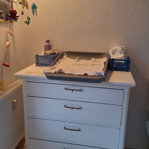 Puslepladen kan nemt afmonteres når der ikke længere er brug for den og så kan kommoden bruges som almindelig kommode.
