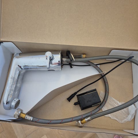 Blandingsbatteri til håndvask i kromfinish. Produktet inkluderer vandhane med tilhørende fittings og overløb. Designet til installation på håndvask med standard monteringshul. Materialet er metal med krombelægning, som sikrer holdbarhed og modstandsdygtighed mod korrosion. Ifø håndvask medfølger. 4 stk tilbage.