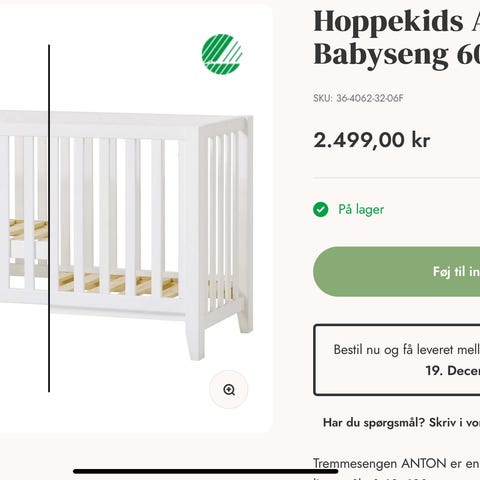 Rigtig fin tremmeseng fra Little hugs inkl. madras. Model; Noble Vintage. Sengen kan både indstilles som en tremmeseng og laves om til en daybed, når barnet bliver lidt større. Vi har været glade for begge versioner.