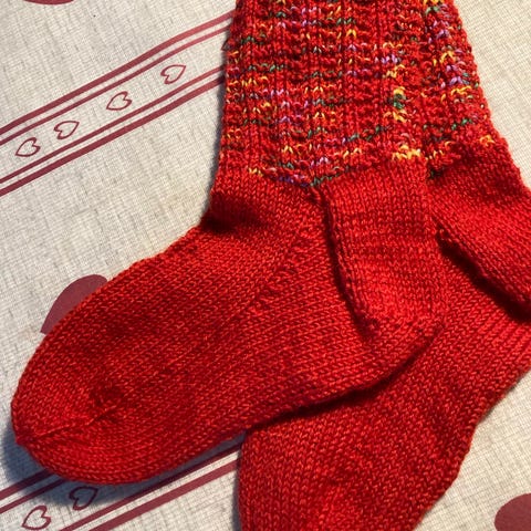 Sokkerne er helt ny strikkede og aldrig været i brug. Strikket efter original gammel færøsk opskrift i traditionelt mønster. Rene/ nye fra røgfrit hjem.