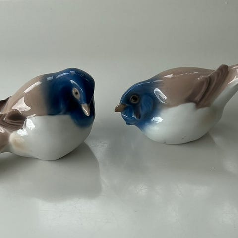 Diverse fugle fra Bing & Grøndahl. Alle er 1. sortering. Figurerne er håndmalede med glaseret finish. Fuglene kan købes enkeltvis til den på billederne angivne pris eller samlet til 1000,-