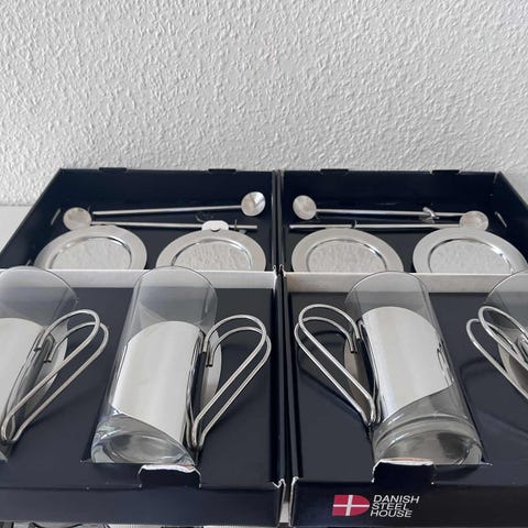 4 stk. stilfulde irish coffee glas i rustfri stål og glas.