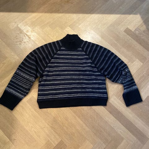 Let oversize, dejlig blød strik, onesize passer bedst str.M/L efter min mening, brugt få gange.