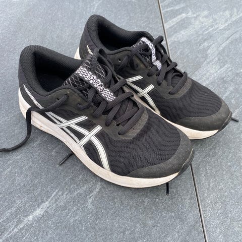 Lækker mørkeblå Asics GT 1000-12 PS løbesko/kondisko str. 35, måler 22 cm indvendig. Brugt af et barn,men stadig gode. Har lidt slid foroven,hvor foden skubbes ned. Ingen betydning for brugen.