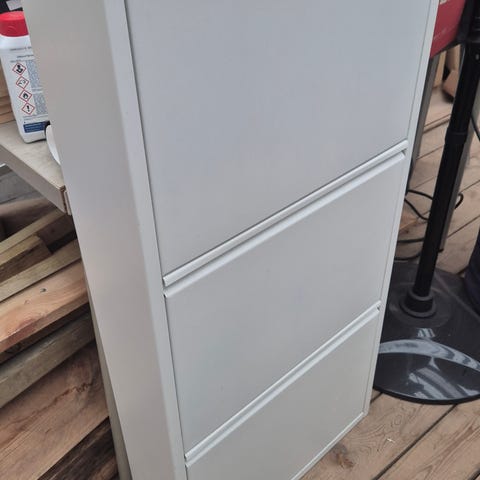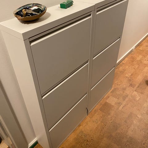 Består af tre sektioner med to klapper i hver (i alt seks rum), så der er god plads til sko og småting.