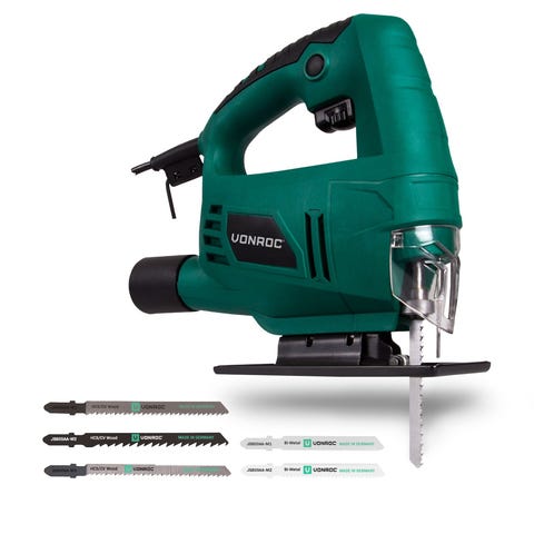 Solid og kraftig stiksav fra AEG, model Step 800 X Fixtec. Maskinen er på 710W og produceret i Tyskland af Atlas Copco Electric Tools. Den har variabel hastighed (550–2700 slag/min), pendulfunktion med indstillinger 0–3, og kan save i op til 110 mm træ.