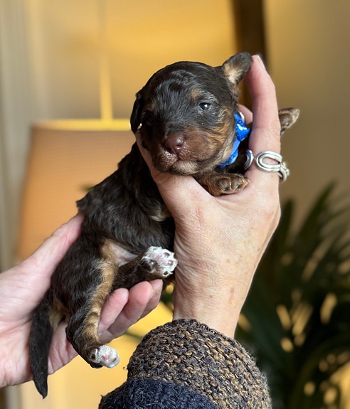 Allergivenlige og fældefri Toy/Dværgpuddelhvalpe – klar til juleferien . De er nu 2 uger gamle og der er nu kun 1 tæve og 1 han tilbage - Tæven er Chokoladebrun, hannen er Choko/tan.
