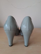 Stiletter, str. 38, mrk. Louis Cardy, Lysegrå m. hvid, Rigtig flotte stiletter med åben snude. Læder overalt - også på hæle. Hæle 9,5 cm. Brugt én gang - som nye. Ingen hakker på hæle. Dyre sko. Prisen er fast. Se div. foto. KAN OGSÅ SENDES.