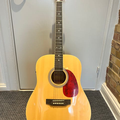 Flot og meget lidt brugt guitar fra Moss. Guitaren er rigtig velspillende med fin lyd og anbefales både til begyndere samt øvende. Købt for 2 år siden som ny.