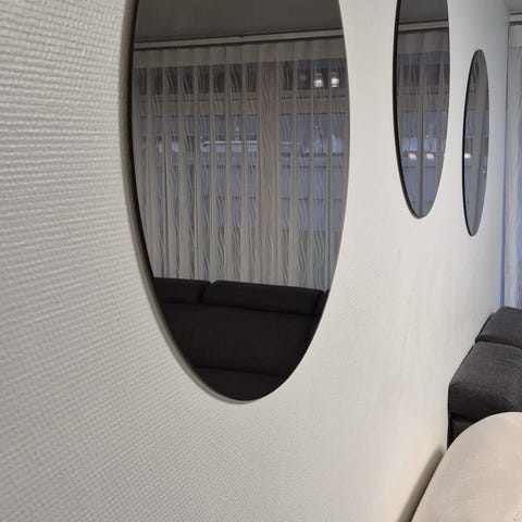 Sælger disse to sorte spejle, som har en diameter på henholdsvis 65 cm og 85 cm. Spejlene kan både sælges samlet eller hver for sig.