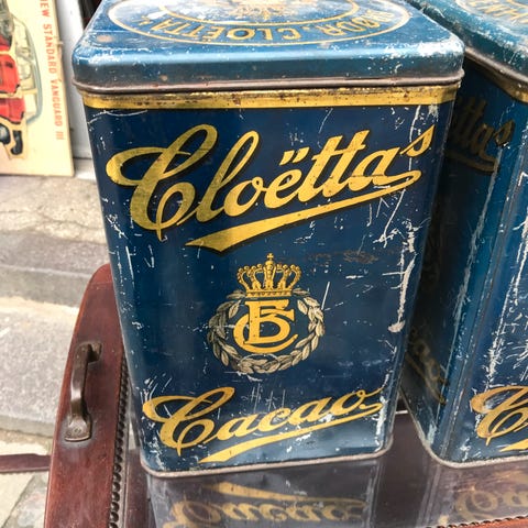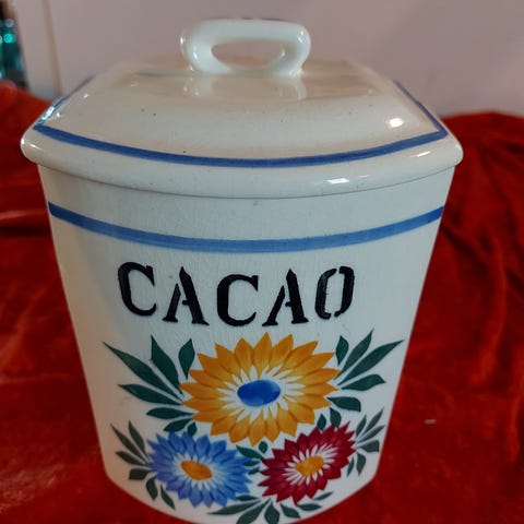 En grafisk smuk dåse- svensk cacao dåse. 13 cm høj.