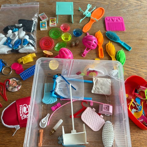Sko, halskæde, parfumesæt mv til Barbie og Ken.