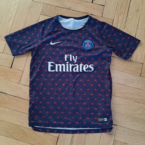 Nike Paris Saint-Germain Fodboldtrøje i størrelse M til mænd. Trøjen er blå med røde og hvide detaljer og er fremstillet med DRI-FIT teknologi for svedtransporterende egenskaber. Materialet er produceret i Thailand. Designet er egnet til fodboldbrug.