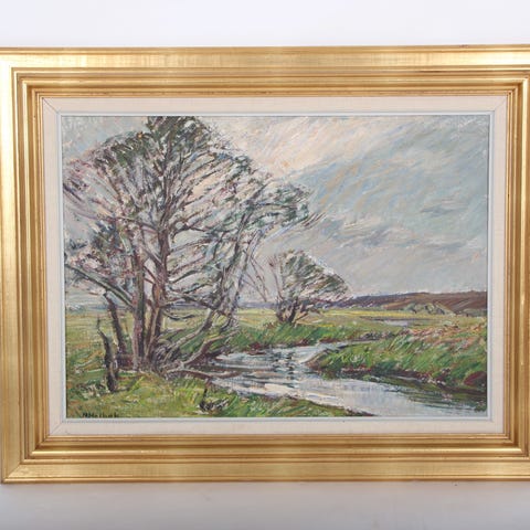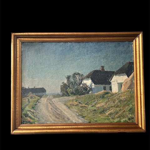 Oliemaleri på lærred. Mål 57x49cm(74x66cm) god stand. Ramme med lidt slitage. Se fotos
