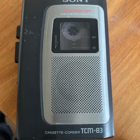 Den har fået skiftet de to remme, så den kører med korrekt hastighed og spoler flot, både frem og tilbage. Den spiller fint de bånd jeg har testet den med. Der medfølger 10 stk. bånd. Lydkvaliteten er selvfølgelig ikke som på et stereoanlæg, med den er, hvad man kan forvente af en ret lille højtaler enhed.