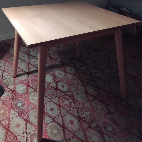 Kan trækkes ud (hollandsk udtræk), benene kan skrues af for nemmere transport. Hver tillægsplade er 55cm.