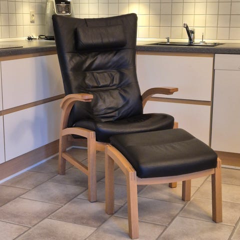 Flot Farstrup lænestol med skammel i læder