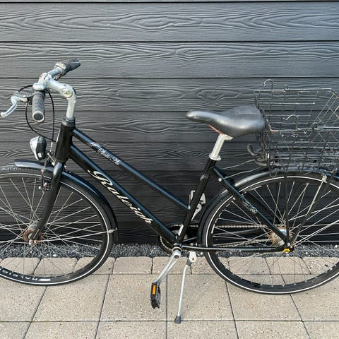 Raleigh Damecykel 28" , 7 indv gear, fod og håndbremse, for og bag magnet lygter, lås med nøgle