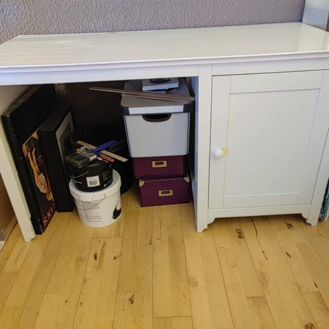 Hvid skrivebord med hjul og stikdåse 120 x 60 cm