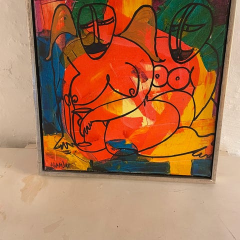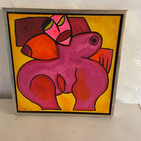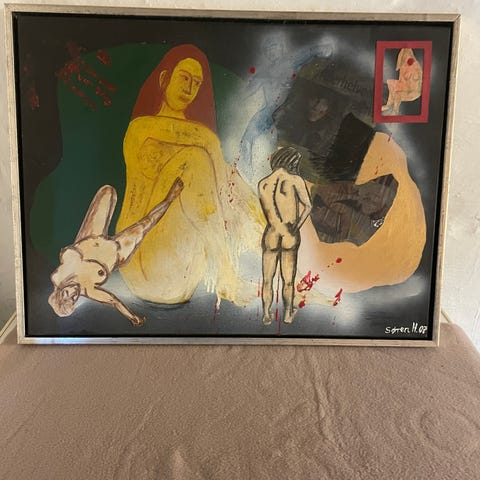 kitchy nøgenmaleri / nøgenbillede / nøgenmotiv af laber ung dame. Formentlig omkring 1970erne. Billedet er signeret, men kan ikke tyde fornavnet. Efternavnet er hansen, hvilket jo er en dårlig ledetråd.