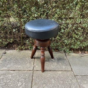 Trebenet taburet/skammel i mørkbejdset bøgetræ.