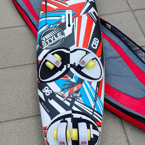 Techno Big 160D freeride board i fin stand klar til næste sæson på vandet, medmindre du surfer i vinteren. Med finne og sværd som sikrer stabilitet, når du krydser og i bølgegang. Et rigtig godt begynderboard eller til den lidt tungere surfer. Kan plane i god vind. Jeg har været mega glad for det, men bruger det ikke mere. Har også fodstropper.