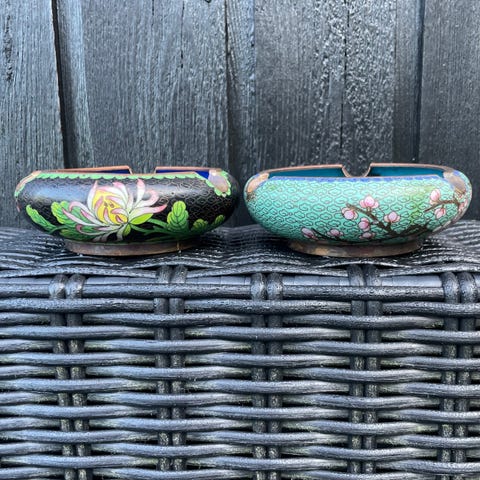 Cloisonné Askebæger – Kinesisk, Emaljeret med Håndmalede Blomster