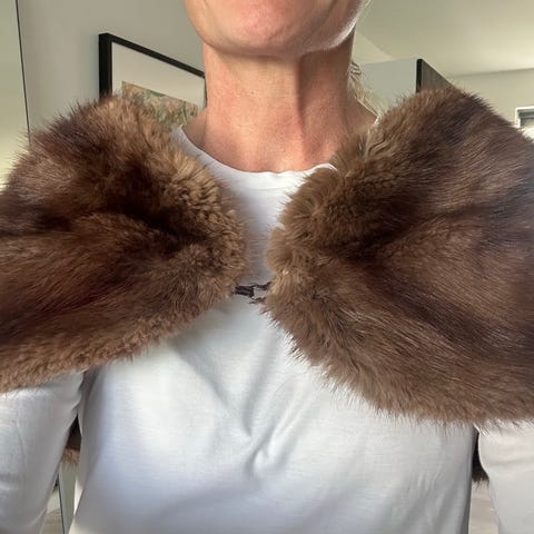 Smuk mørk minkcape fra slutningen af 1950’erne, danskproduceret af Pelsstuen Aalborg.