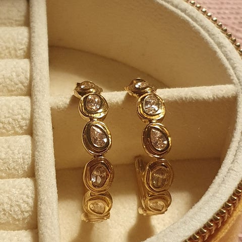 Flotte klassiske hoops med fint mønster, lavet i forgyldt kirurgisk stål