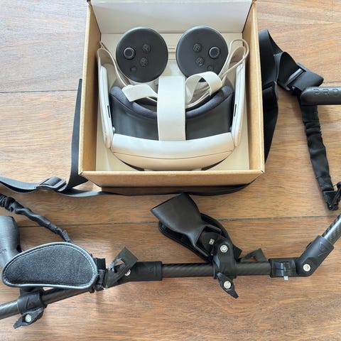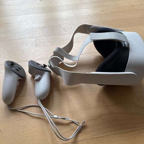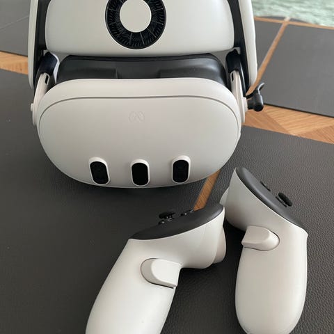 MetaQuest 3 vr briller med ekstra batteri for længere brugstid.