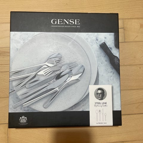 6 stk middagsknive, i bestikserien Steel Line, produceret af Raadvad, senere af Gense. De 5 knive er stemplet Gense og med skær. En kniv er stemplet Raadvad og uden skær.