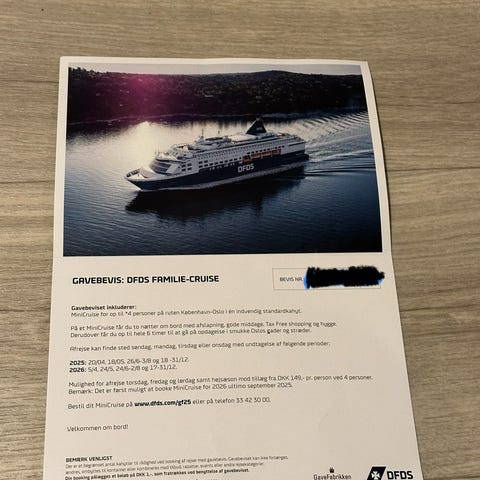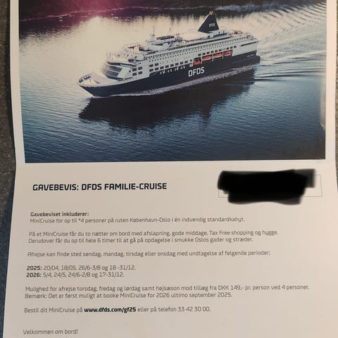 Sælger 2 gavekort til DFDS DE ER TIL 4 personer pr stk