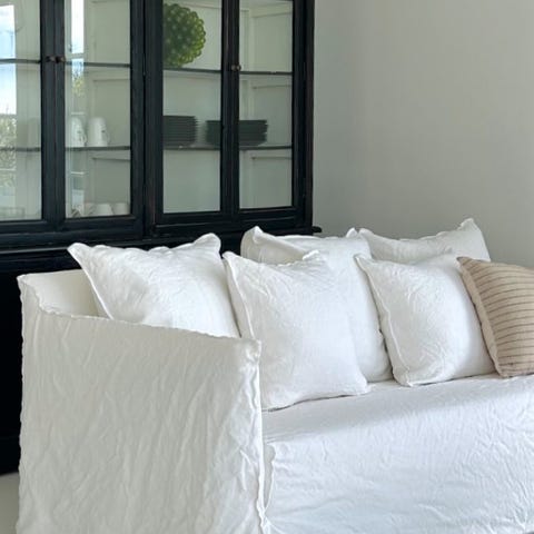 Originalt 22R Ghost betræk i 100 % meget meget tykt ren hvid hør - passer til Gervasoni Ghost sofa med armlæn i højre side - model 22R🤍 det kan selvfølgelig også vaskes🙌🏻 det har en god størrelse så det ikke bliver for stramt efter vask.