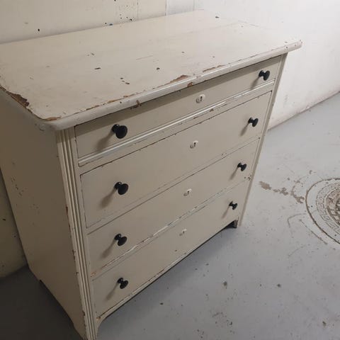 Super fed kinarød kommode fra 90’erne. Bølget form og stålgreb.
