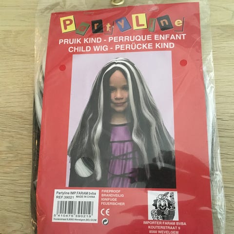 Sort paryk med hvide striber. Brugt en gang og opbevaret i Hårby og original indpakning