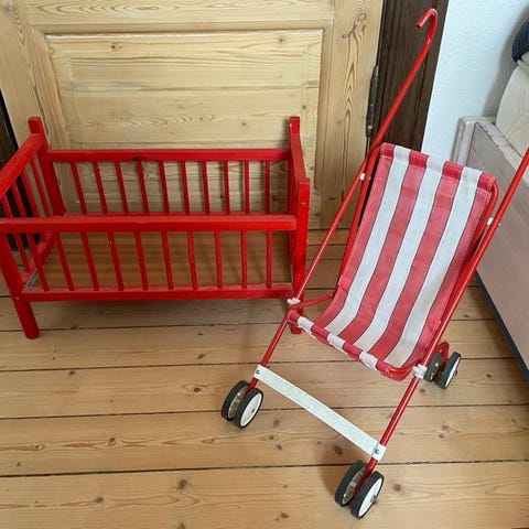 Virkelig fint lavet med tyk dyne og med en stofbetrukket skummadras. Dyne og pude kan tages af og vaskes eller som en hverdagsleg. Virkelig fin stand.