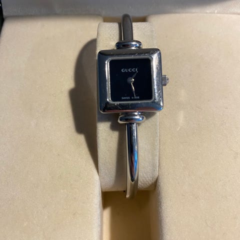 Unikt Gucci ur. Selve uret er i god stand, men skal have et nyt batteri. Læderremmen kan skiftes.