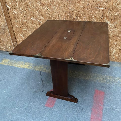 Ældre skibsbord/Maritimt i mørk egetræ,med messing detaljer.
