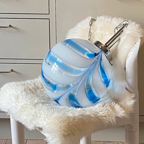 Denne smukke Murano loftslampe med det flottest mønster, har vi selv haft med hjem fra Firenze.