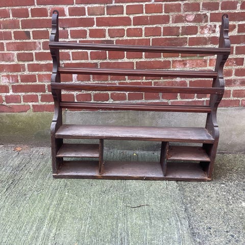 Gammel fin tallerkenrække og hylde i almue grøn.