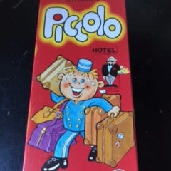 Picolo Hotel brætspil inkluderer en rød og gul klokke samt spilkort med forskellige symboler. Spillet er designet til flere spillere og har til formål at matche kort og ringe med klokkesignalet. Spillets komponenter består af papkort og en metal- og plastikklokke.