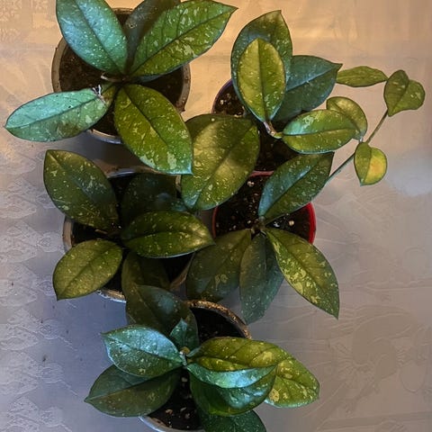 Sunde små Hoya obovata ‘Splash’ planter. De er små, fordi jeg har klippet dem ned.