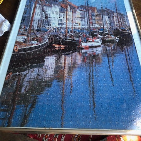 Mine børn havde samlet et puslespil på 1000 brikker, som vi derefter fik indrammet. Børnene vil ikke have den mere og af denne grund sælger vi.