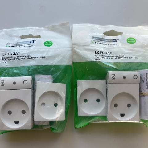 4 stk - Opus74 stikkontakt i lysegrå, to i indpakning og 2 andre åbne men aldrig brugt, 90 kr pr stk.