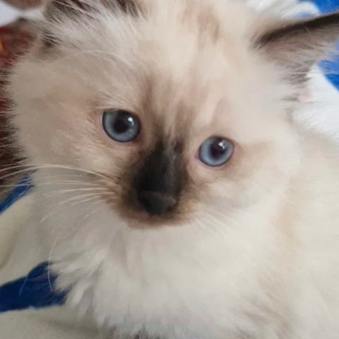 Vores elskede Dior Xavier Pure Snowfall (100% ragdoll, blåmasket) mangler et blivende, kærligt og trygt hjem der matcher ham og hans behov: Han er en utrolig kærlig, udadvendt og sød kat, som også er meget snakkesalig og kontaktsøgende - han hilser på enhver gæst der kommer ind af døren og søger altid deres opmærksomhed. Han har det bedst når han ligger i skødet på en af os (eller hvem der gerne vil - en gæst er også fint, han er helt ukritisk for opmærksomhed) og han elsker at putte med os om natten. Han er den ultimative bedste katteven man kan ønske sig! Og vi kommer virkelig til at savne ham.