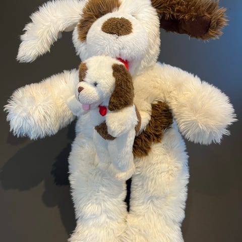 Build-A-Bear Hunde Bamse med rød og hvid tøj.