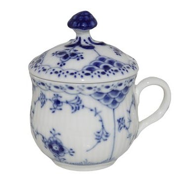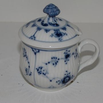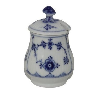 Royal Copenhagen Musselmalet Riflet, sennepskrukke med låg.