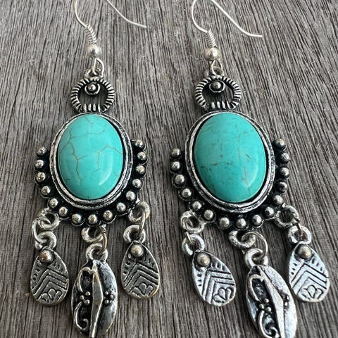 Flotte turkise øreringe af keramik med sølv ørestik 925